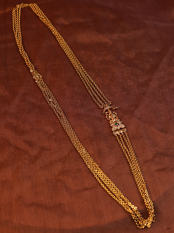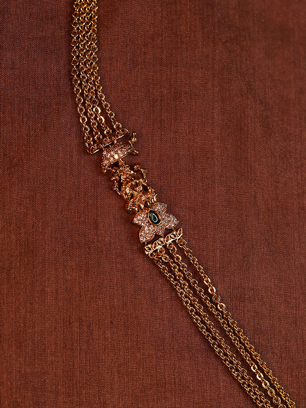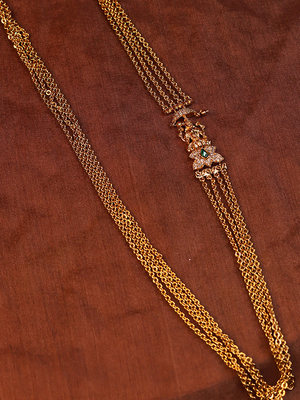 Mahalakshmi Motif with single layer green & red kemp stone chain haram